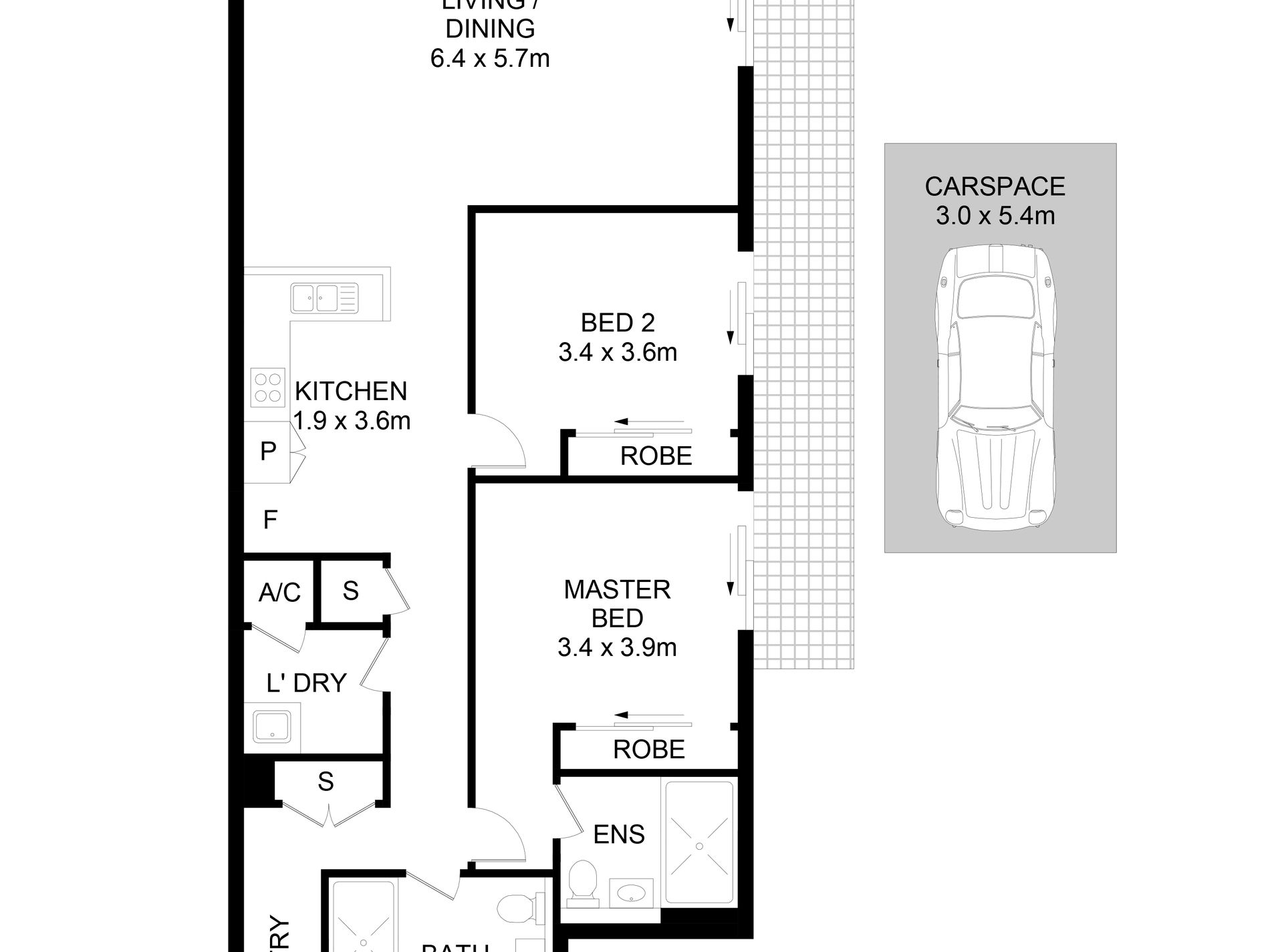 Both bedrooms are generously sized, with built-in wardrobes, while the main bathroom is neat and functional. Additional features include internal laundry facilities, secure building access, and a single car space.